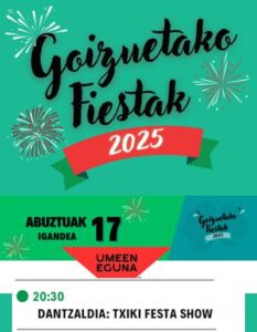 GOIZUETAKO FIESTAK 2025 Web Por FestaSound | 11 agosto, 2025 | No hay comentarios | ← Anterior Siguiente → Deja una respuesta Cancelar la respuestaTu dirección de correo electrónico no será publicada. Los campos obligatorios están marcados con *Comentario * Nombre * Correo electrónico * Web Δ Este sitio usa Akismet para reducir el spam. Aprende cómo se procesan los datos de tus comentarios.